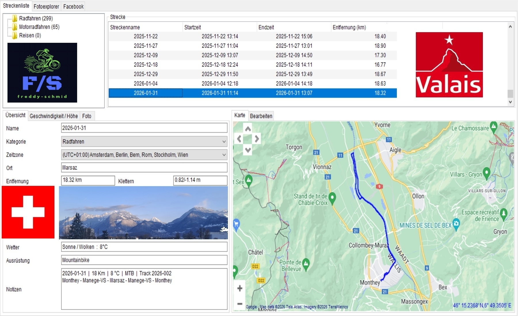 Mountainbike | 18 Km | Track 2026-002 | Sonne | 8°C