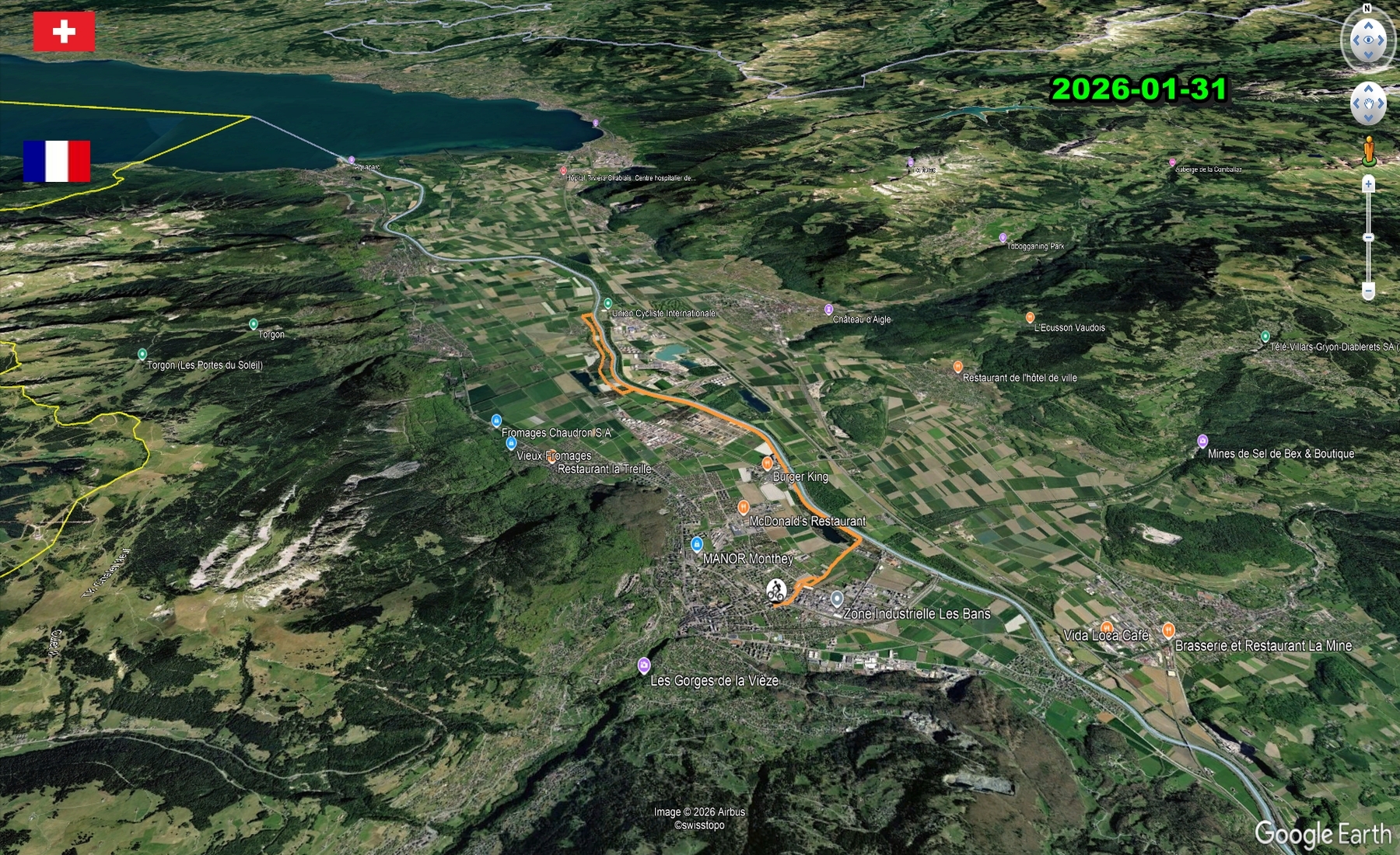 ROUTE : Monthey - Manege-VS - Illarsaz - Manege-VS - Monthey
