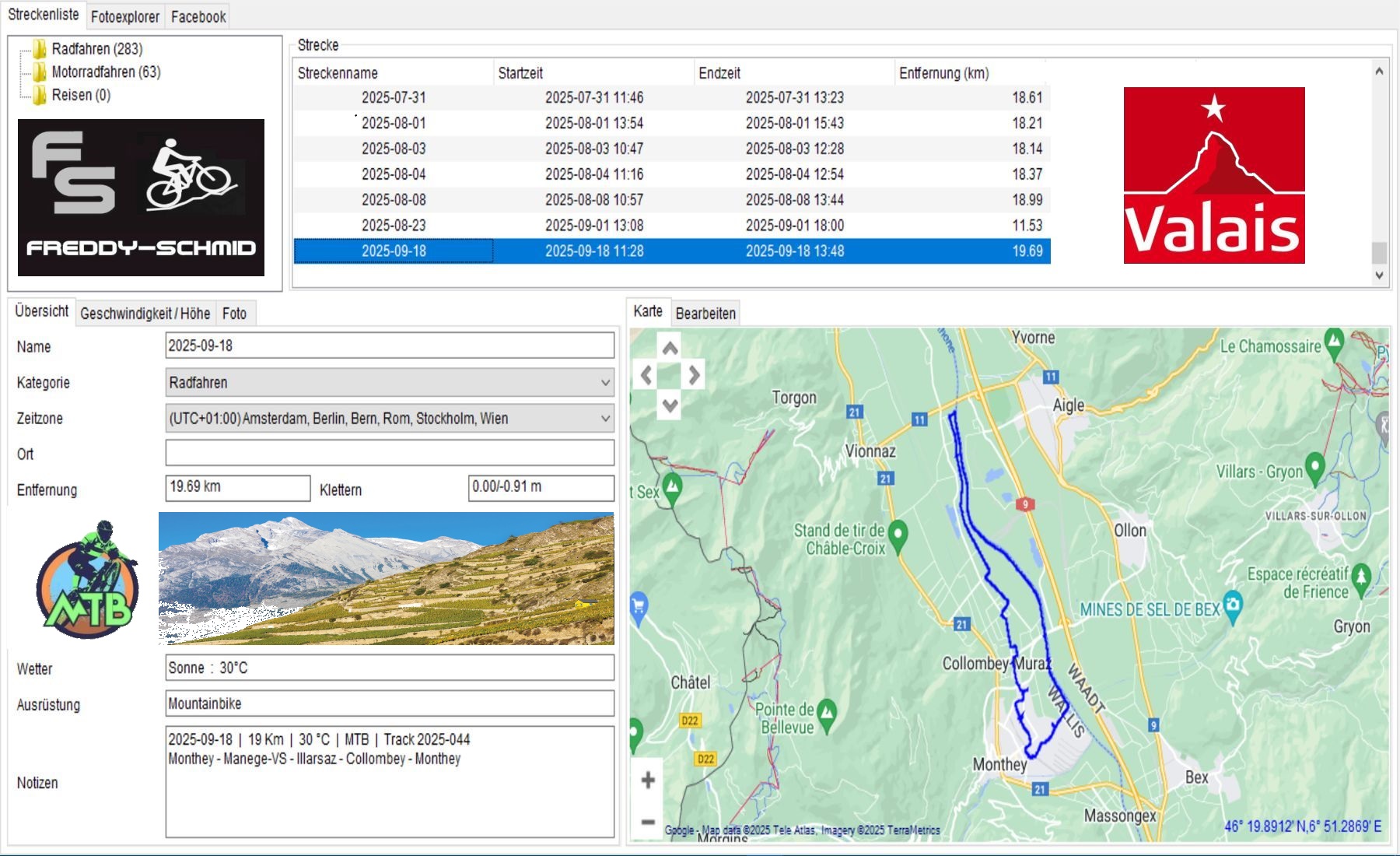 Mountainbike | 19 Km | Track 2025-044 | Sonne | 30°C